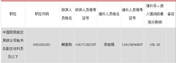 2013年公務(wù)員面試遞補(bǔ)公告:中國(guó)民用航空局局機(jī)關(guān)