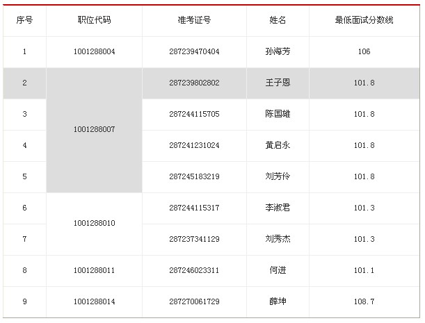 因部分考生放棄面試資格,根據(jù)公務(wù)員考錄工作有關(guān)規(guī)定,按照筆試成績(jī)從高到低順序,遞補(bǔ)以下考生進(jìn)入面試: