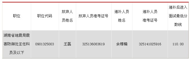 2013年國(guó)家公務(wù)員面試遞補(bǔ)公告:湖南省地震局