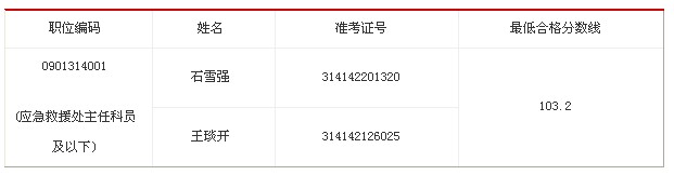 因進(jìn)入面試考生孫騰科、李鵬飛、胡彬3人自愿放棄我局2013年公務(wù)員錄用面試資格,根據(jù)中組部、人力資源和社會保障部以及國家公務(wù)員局關(guān)于公務(wù)員招考面試工作的有關(guān)規(guī)定,按照公共科目筆試成績從高到低的順序遞補(bǔ)2名考生進(jìn)入面試名單,并調(diào)整面試最低合格分?jǐn)?shù)線: