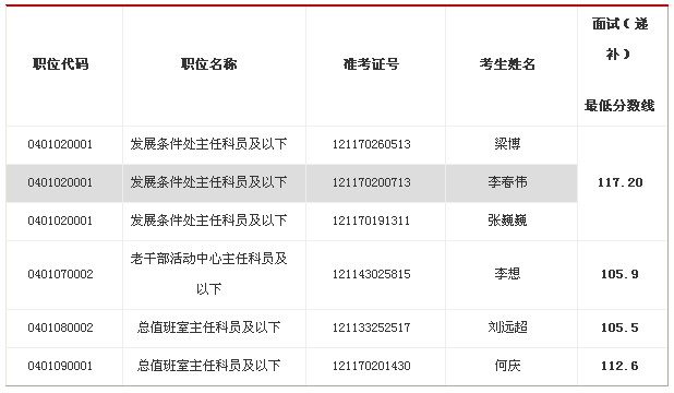 因部分進入我部面試名單人員自愿放棄面試資格,根據(jù)公務(wù)員招考有關(guān)規(guī)定,按照公共科目筆試成績從高到低的順序,現(xiàn)將我部2013年度公務(wù)員考錄面試遞補人員名單公告如下: