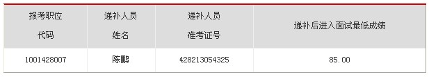 因1位進入面試名單人員自愿放棄參加面試,根據(jù)公務(wù)員考錄有關(guān)規(guī)定,擬進行遞補。遞補人選如下: