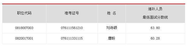 因部分考生放棄面試資格,根據公務員招考有關規(guī)定,擬在公共科目筆試、專業(yè)科目筆試成績合格的考生中,按照筆試合成成績從高到低的順序,遞補以下考生為面試人選: