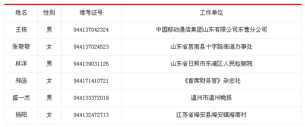 根據(jù)《中央機(jī)關(guān)及直屬機(jī)構(gòu)2013年考試錄用公務(wù)員工作實(shí)施方案》的要求,經(jīng)公共科目筆試、面試、體檢、考察等程序,經(jīng)研究,擬錄用王棟等6名同志(具體情況見下表)為我會機(jī)關(guān)工作人員,現(xiàn)將有關(guān)情況予以公示。公示期間,如有異議,請向中國作家協(xié)會人事部反映。