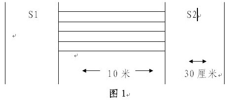 場(chǎng)地器材:10米長(zhǎng)的直線跑道若干,在跑道的兩端線(S1和S2)外30厘米處各劃一條線(圖1)。木塊(5厘米×10厘米)每道3塊,其中2塊放在S2線外的橫線上,一塊放在S1線外的橫線上,秒表若干塊,使用前應(yīng)進(jìn)行校正。