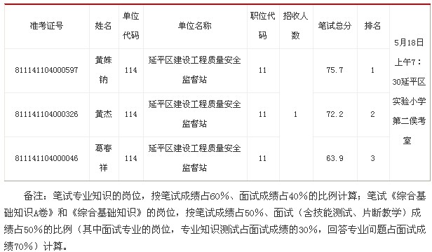 請考生攜帶準(zhǔn)考證、身份證于規(guī)定時間到延平區(qū)實驗小學(xué)參加面試,未能按時報到者視為自動放棄面試。