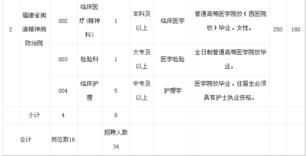 3、若出現(xiàn)福建省閩清精神病防治院臨床醫(yī)療(精神科)專業(yè)崗位的聘用考生人數(shù)不足時,可以從報考福州神經(jīng)精神病防治院的臨床醫(yī)療(精神科)專業(yè)崗位符合聘用條件,但因聘用人數(shù)限制而落聘的考生,自愿調(diào)劑到福建省閩清精神病防治院工作的,按總分高低依次確定進(jìn)行調(diào)劑。