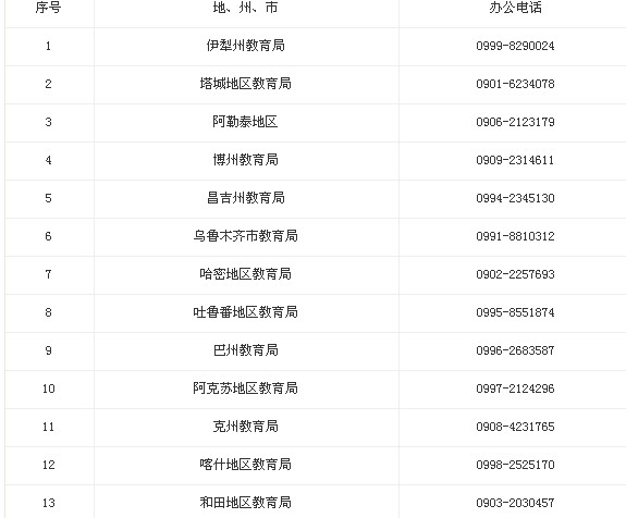 2013年新疆教師招聘考試各部門聯(lián)系方式