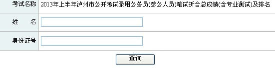 2013年四川瀘州市公務(wù)員筆試成績(jī)查詢