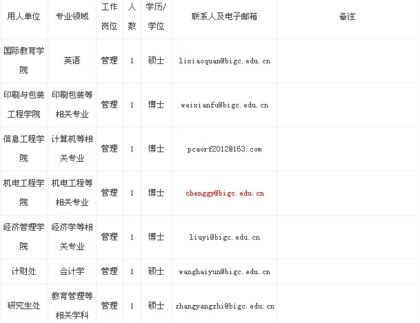 1、網(wǎng)上報名:請應(yīng)聘人員將電子簡歷和郵件名改為“應(yīng)聘崗位+姓名”,分別發(fā)送至人事處郵箱renshichu@bigc.edu.cn和二級單位公布郵箱。