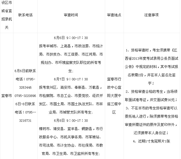 2013年江西宜春公務(wù)員面試資格審查時(shí)間表