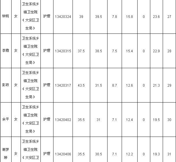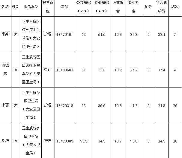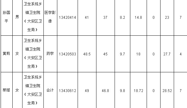 2013年上半年大安區(qū)衛(wèi)生系統(tǒng)事業(yè)單位招聘工作人員面試遞補(bǔ)人員名單