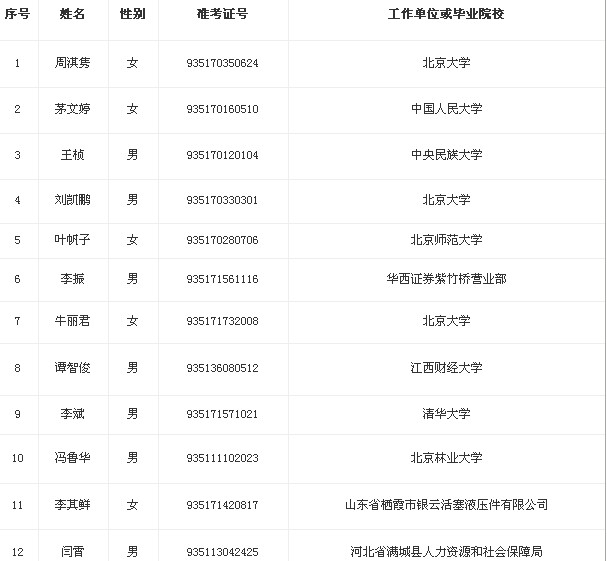 2013年北京石景山區(qū)公務(wù)員考試擬錄用人員公示