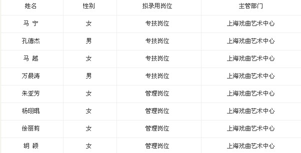 2013年上海越劇藝術(shù)傳習(xí)所(上海越劇院)擬錄人員公示