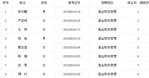 根據(jù)《宜昌住房公積金管理中心2013年公開招聘工作人員實(shí)施方案》,經(jīng)筆試、面試、體檢及考核等程序,擬聘用下列人員為宜昌住房公積金管理中心工作人員,現(xiàn)予以公示: