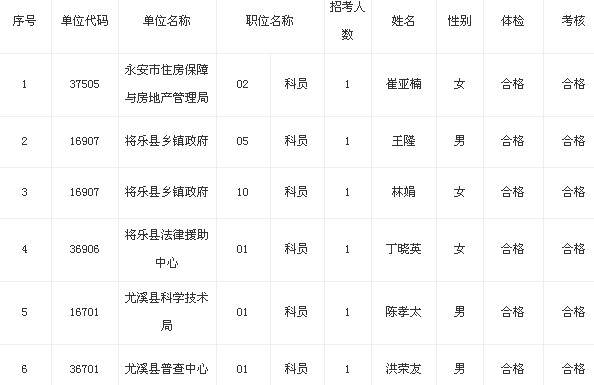 2012年三明市擬錄用公務(wù)員名單公示(十五)