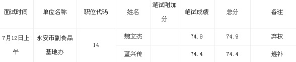 2013年永安市屬事業(yè)單位面試遞補(bǔ)名單