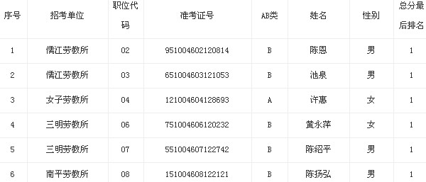 2013年春季勞教系統(tǒng)公務(wù)員考錄體檢名單