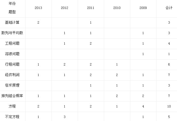 摘要 歷年國家公務(wù)員考試行測題型分析:數(shù)量關(guān)系