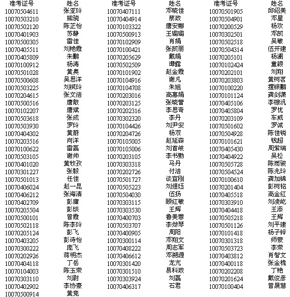 根據《湖南省2013年考試錄用公務員公告》和《關于2013年常德市考試錄用公務員實施意見》(常人社發(fā)〔2013〕7號)文件精神,經醫(yī)院檢查,現(xiàn)將常德市2013年市直單位考試錄用公務員體檢合格人員名單予以公示(見附表)。公示期三天,從2013年8月7日至2013年8月9日18:00時止。