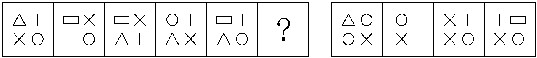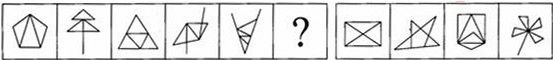 例3 【2012-國家-89】把下面的六個圖形分為兩類,使每一類圖形都有各自的共同特征或規(guī)律,分類正確的一項是( )