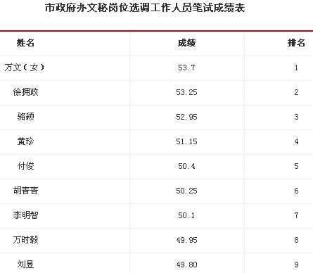 摘要 2013年湖南岳陽市政府辦公室公務(wù)員筆試成績公告