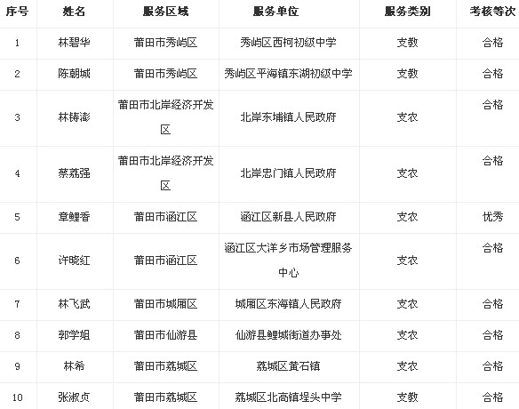 2013年福建莆田市“三支一扶”(年度/服務(wù)期滿(mǎn))考核公示如下:
