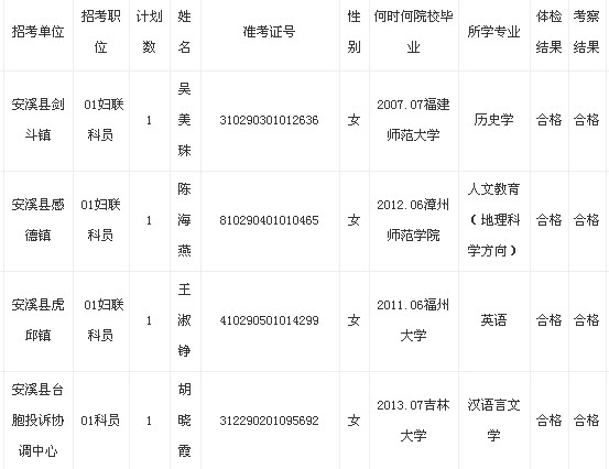 2013年福建泉州市黨群系統(tǒng)擬錄用公務(wù)員公示(四)