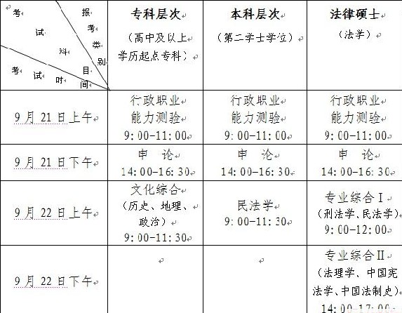 筆試包括公務(wù)員公共科目考試和教育入學(xué)考試。公務(wù)員公共科目考試內(nèi)容為行政職業(yè)能力測驗(yàn)和申論考試。教育考試科目由教育部根據(jù)國家統(tǒng)一高等院校入學(xué)考試模式,結(jié)合試點(diǎn)班特點(diǎn)按層次確定,報考??频目忌鑵⒓游幕C合(歷史、地理、政治)的考試;報考第二學(xué)士學(xué)位的考生需參加民法學(xué)的考試;報考法律碩士專業(yè)學(xué)位研究生的考生需參加專業(yè)綜合I(刑法學(xué)、民法學(xué))、專業(yè)綜合II(法理學(xué)、中國憲法學(xué)、中國法制史)的考試??荚嚪秶灾薪M部、人力資源和社會保障部、教育部分別負(fù)責(zé)制定的《考試大綱》為準(zhǔn)。具體詳情請登錄相關(guān)網(wǎng)站查詢。