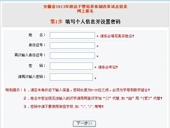 點擊進入:2013年安徽政法干警考試報名入口