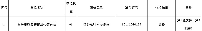 2013年江蘇泰州市公務(wù)員遞補體檢如下: