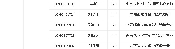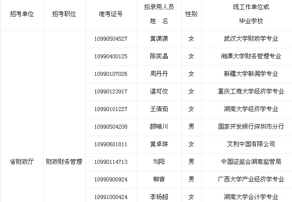 2013年湖南省財政廳擬錄用公務員名單公示