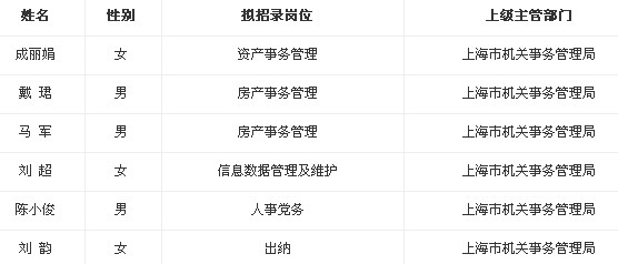 2013年上海市國有資產事務中心擬錄用人員名單公示