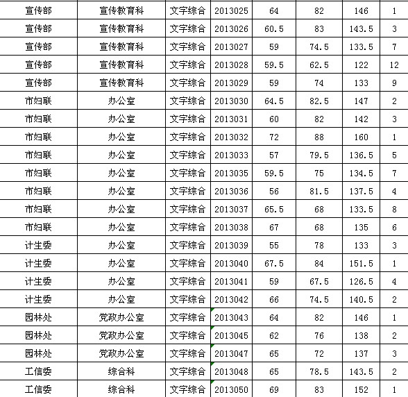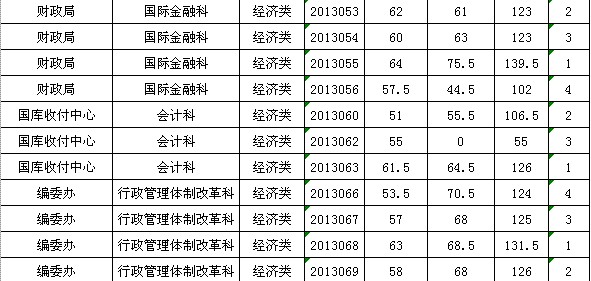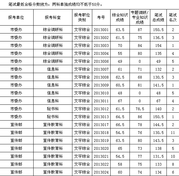2013年遼寧牡丹江市直機關遴選公務員筆試成績