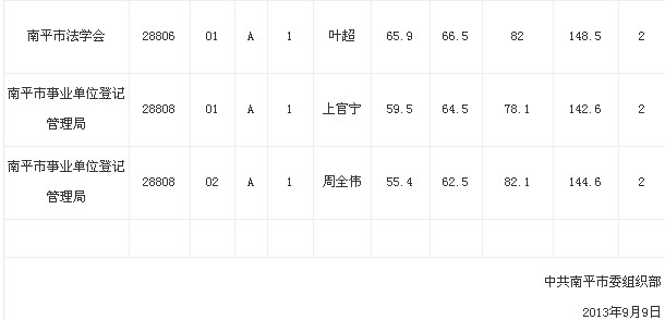 2013年福建省南平市政府系統(tǒng)擬錄用公務(wù)員公示