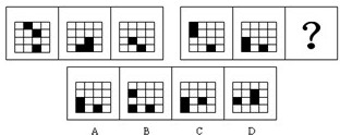 答案:A 解析:本題屬于位置類,主要考察平移。左側(cè)小黑格沿著外層依次逆時針移動3格,右側(cè)小黑格沿著外層依次逆時針移動2格。所以選擇A選項。