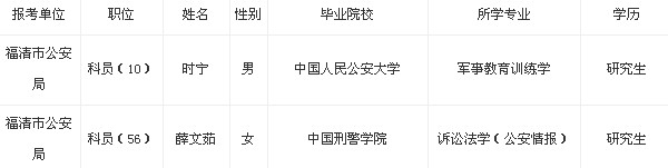 2013年福建福清公安局?jǐn)M錄用公務(wù)員名單公示