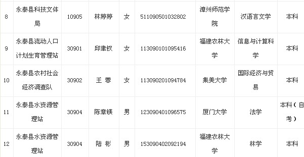 2013年福建福州永泰縣政府系統(tǒng)擬錄用公務員名單公示