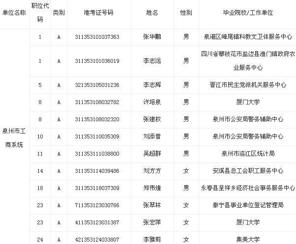 2013年福建莆田政府?dāng)M錄用公務(wù)員名單公示(八)