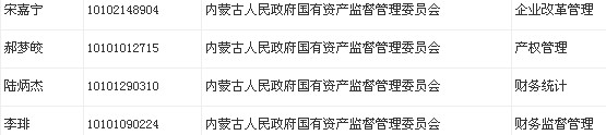 根據《內蒙古自治區(qū)黨政群機關和參照公務員法管理單位2012年考試錄用公務員和工作人員簡章》,經過筆試、面試、體檢、考察,現對自治區(qū)國資委、自治區(qū)建設工程質量監(jiān)督總站擬錄用人員予以公示: