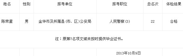 2013年浙江金華市級機關公務員考察對象(第五批)