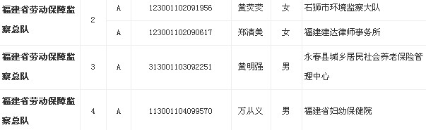 根據(jù)《公務(wù)員錄用規(guī)定(試行)》和《福建省2013年度考試錄用公務(wù)員工作實(shí)施方案》的要求,在筆試、面試、體檢和考察合格的基礎(chǔ)上,擬錄用考生韓?等13人為福建省人力資源和社會(huì)保障廳所屬參照公務(wù)員法管理事業(yè)單位工作人員,現(xiàn)向社會(huì)予以公示。公示期間,如有問題,請及時(shí)反映。