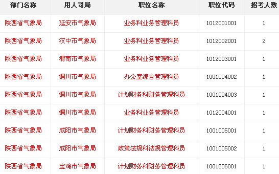 2014年國(guó)家公務(wù)員考試陜西省氣象局職位表公布如下: