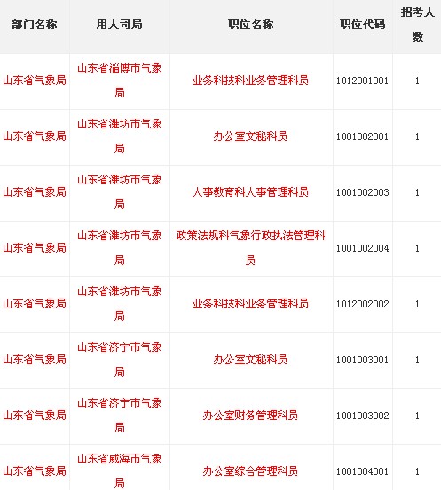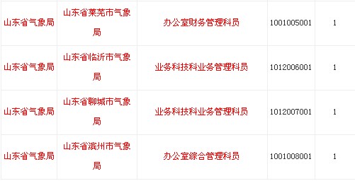 2014年國(guó)家公務(wù)員考試山東省氣象局職位表如下:
