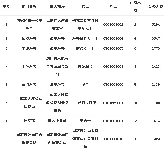 2014年國家公務員考試報名審核通過人數(shù)前十部門(廣東)
