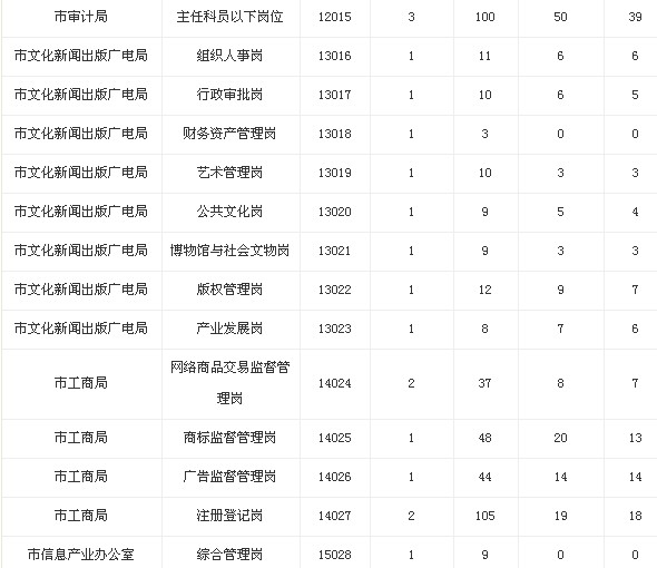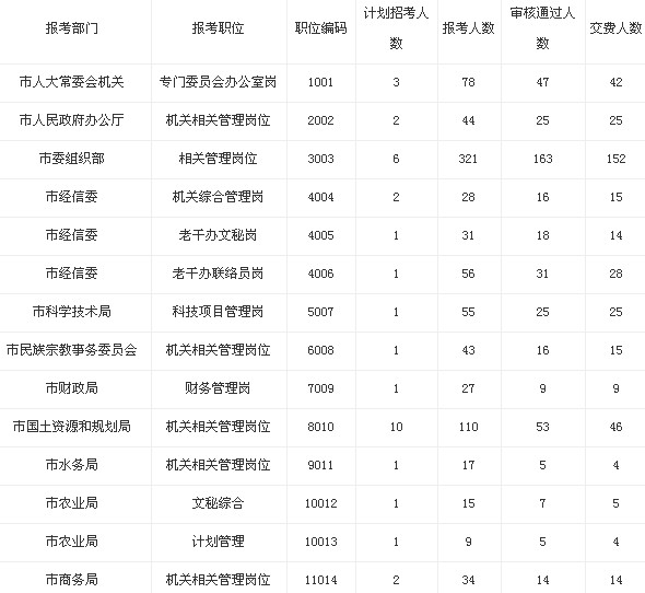 截止到10月21日上午9點,2013年湖北武漢市直機關公務員報名人數(shù)統(tǒng)計如下: