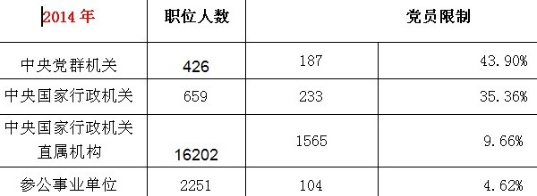 一、2014年國考職位黨員限制情況