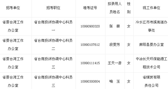 摘要 2013年湖南省委中國臺灣工作辦公室公務(wù)員擬錄用名單公示