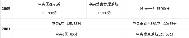 2004年―2013年國家公務員考試合格分數線如下: