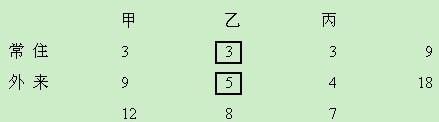 【解析】根據(jù)題目中給出的條件可知,在橫向上可分為甲、乙、丙三個社區(qū),在縱向上可分為常住人口和外來人口,因此,對于此題目可以列成3 × 2的列表,再進行求解??cè)丝诎凑占、乙、丙三個社區(qū)分共分成27份,按照常住、外來分3份,所以,縱向的1份等于橫向的9份 。所以,本題目的答案選擇D。